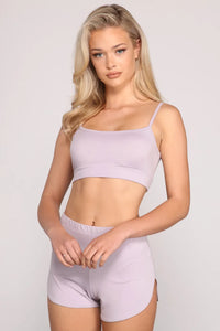 Let these cute pajama shorts put a hold on you! The pajama shorts feature an elastic mid-rise waist, a tulip hem, and a cheeky bottom. Complete look with the matching pajama tank.