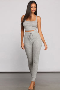 Casual Ribbed Knit Pajama Tank And Leggings Set