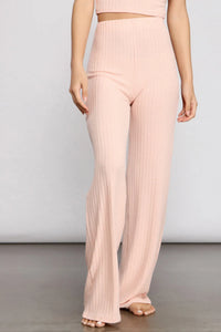 Chill out in cozy leggings that are perfect for lounging! The pajama leggings feature a high-rise waist, drawstring ties, and a skinny leg fit. The leggings are composed of a ribbed knit fabric that offers a relaxed fit with slight stretch. Complete look with the matching cropped tank and slides.