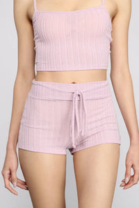 Keep it basic chic with pajama shorts that are perf for lounging in! The shorts feature a mid-rise waist and a cheeky fit with a lettuce-trim edge. The shorts are composed of a ribbed knit fabric that offers a relaxed fit with a moderate stretch. Complete look with the matching pajama top.