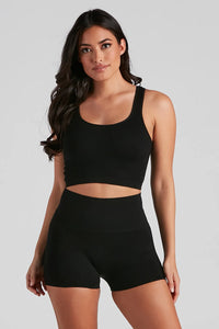 These lounge shorts will give you a chic and seamless look! They feature a high-rise waist and a short, fitted silhouette. Pair these shorts with the matching lounge bralette and cute sneakers.