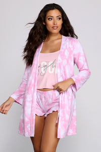 Cloud 9 Tie Dye Robe and Pajama Cami With Shorts Set