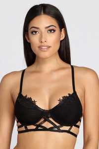 Sexy and strappy, this floral applique bralette will show your sultry side.