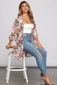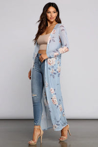 Showcase your beauty in this lightweight mesh floral printed duster! It features long fitted sleeves, a long flowy fit, and an all-over gorgeous floral pattern. Layer this duster over your favorite bodysuit and style it with high waist jeans for the perf everyday outfit.