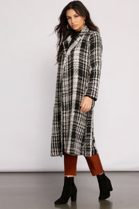 Layer on a chic vibe that will have you looking stylish and poised in this tweed coat! It features a lapel collar, long sleeves, a tie front belted waist, lined side pockets, and a mid-length, relaxed fit. Pair this coat with dress pants and heels for an elevated workwear look.