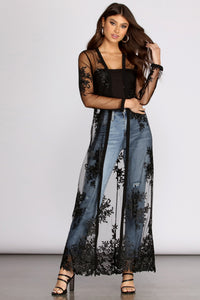 Go for a chic & sheer look by wearing this sheer mesh kimono over your trendy 'fits! The perf spring time layering piece.