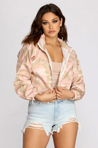 Keep it lowkey and stylish in this cropped camo jacket. Protect yourself (and your outfit!) from the weather!