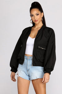Zip up into this trendy chic bomber jacket that will pair perfectly layered over all your 'fits!