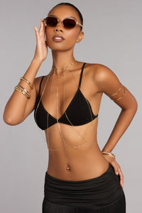 This is the kind of sparkle that moves with you. The rhinestone body chain drapes just right, adding a subtle shine that turns simple outfits into intentional looks—perfect for parties or styling with your bikini for a chic vacation glam moment.