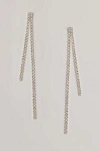 Classic Glam Rhinestone Fringe Duster Earrings Classic Glam Rhinestone Fringe Duster EarringsClassic and glam, these duster earrings feature a dainty two-row fringe design with mini rhinestone embellishments. Style with a tennis bracelet to complete your luxe look. Fit & Features - Two-row fringe design