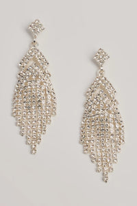 Gorgeous Glamour Rhinestone Fringe Earrings Gorgeous Glamour Rhinestone Fringe EarringsExude gorgeous glamour with these sparkling rhinestone earrings featuring a diamond-shaped duster design with cascading fringe detailing. Style with an envelope clutch for your dressy affair. Fit & Features - Diamond-shaped post
