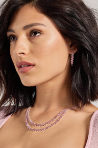Forever Sparkle Rhinestone Necklace And Earrings Set Forever Sparkle Rhinestone Necklace And Earrings SetRadiate a stunning sparkle in this rhinestone necklace and earrings set perfect for your next black-tie affair! It features a gorgeously detailed collar necklace with a single row of rhinestones leading to two rows of rhinestones and a tiered asymmetric rhinestone design at the center. The short drop earrings feature a matching tiered asymmetric rhinestone design for a seamless chic look. Style this luxe set with a floor-sweeping formal dress and stiletto heels. Fit & Features - Necklace and earrings set