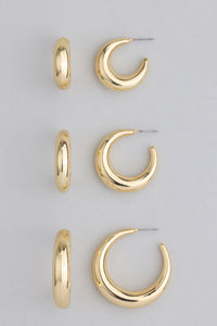 This chic three pack hoop earrings set is always a must-have accessory! From daytime outings to nights on the town or dressy evenings, these hoop earrings elevate every look.