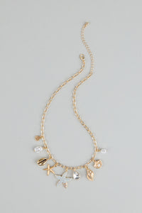 Serving beach babe energy even when you're nowhere near the sand. This charm necklace brings the coastal vibes with pearls, shells, and all the dreamy sea-inspired details.