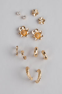 Why pick one when you can have them all? This six-pack earring set gives you endless styling options with sparkling studs, floral details, and chic hoops that go from everyday shine to night-out glam.