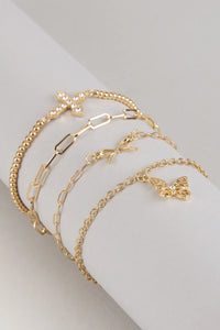 Serving charm from every angle. This four-pack bracelet set is the perfect mix of flirty pendants and pretty chains—made for stacking and showing off all day long.