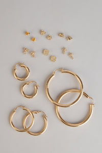 One set, endless moods. This nine-pack of stud and hoop earrings gives you everything from dainty hearts to bold hoops—basically, your entire earring rotation handled. Mix, match, and let your vibe do the talking.