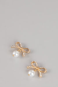 Sweet Sparkle Rhinestone And Pearl Bow Stud Earrings