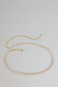 Bring on the sparkle with this radiant baguette cubic zirconia belt that instantly elevates any look. Designed with a polished-tone chain and adjustable fit, it’s the perfect glam touch for any look.