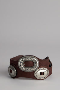 Western flair, but make it fashion. This concho faux leather belt adds vintage-cool vibes to any outfit—just the right mix of edgy and effortless.