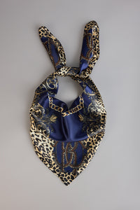 A statement piece for your accessory rotation. This silky satin scarf features an intricate baroque chain design with a bold leopard border—perfect for tying around your neck, hair, or handbag for instant luxe energy.