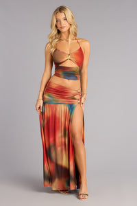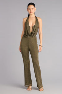 This is the one you wear when the night calls for confidence with zero effort. The draped cowl neckline and open back create a fluid, elevated look that moves effortlessly from sunset cocktails to a resort dinner.