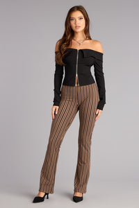 Retro flair meets everyday comfort. These striped flare pants sculpt your shape with a soft stretch fit that’s equal parts chill and elevated—perfect for coffee runs, office hours, or casual nights out.
