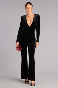 Scene Stealer Velvet Long Sleeve Flare Jumpsuit