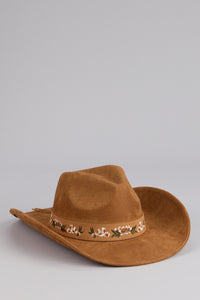 Western vibes with a feminine twist. This faux suede cowboy hat is embroidered with delicate florals, making it the perfect hat for country nights and bachelorettes out West!