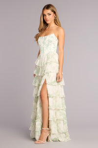Lilyana Floral Chiffon Strapless Ruffle A-Line Dress