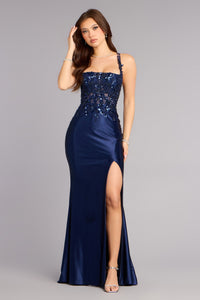 Gigi Satin Sequin Lace Formal Dress