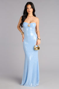 Designed for moments that call for quiet glamour, the Aimee sequin mermaid gown catches the light with every step and every turn. A sculpted bodice with starfish hardware and a cutout back brings a polished yet unexpected finish.