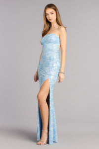 Isabel Sequin Floral Strapless Formal Dress
