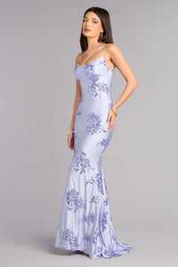 All shine, no second-guessing—the Aila floral sequin mesh mermaid dress was made for your most photographed nights. It skims the body with a curve-hugging fit, delicate straps, and a lace-up back detail that turns every exit into a moment.
