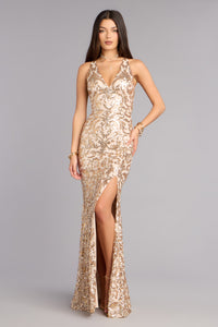 Steal the spotlight from the very first step in the Emely formal dress. Crafted with luminous floral sequins, a curve-contouring mermaid silhouette, and a statement high slit, it’s made for prom nights, black-tie galas, and any entrance that deserves a little drama and a lot of glamour.