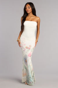 Lilyana Floral Chiffon Strapless Ruffle A-Line Dress