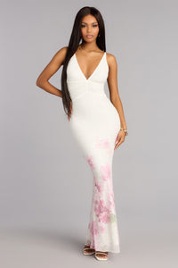 Romantic with a refined edge, the Margo beaded mermaid gown is designed to move beautifully through every elegant moment. A floral pattern, plunging V-neck, and low back create a striking silhouette that feels polished, confident, and undeniably memorable.