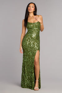 Kelsey Sequin Floral Slit Formal Dress