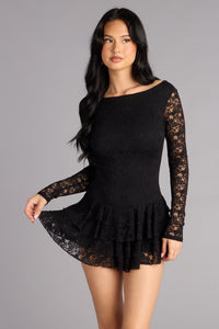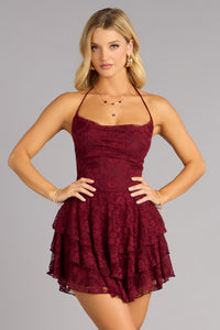 This is the dress you reach for when the plan turns into a whole night out. The lace texture and tiered skirt bring movement, while the open back keeps the look confident and fun.