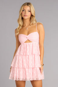 This one understands the assignment. A sweetheart neckline with lace trim and a flirty drop-waist skirt that moves just right—polished up top, playful from every angle.