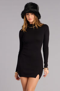This mini dress is the definition of winter glam—sleek brushed knit meets a plush faux fur hem that adds instant drama. It’s soft, stretchy, and serves that effortless luxe vibe from brunch to chic winter nights.