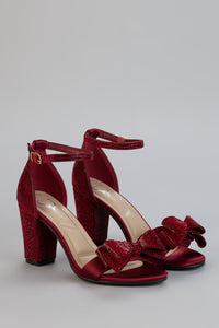 Polished, playful, and perfectly tied. These satin block heels bring the glam with a rhinestone bow accent that adds just the right touch of sparkle to any dressy occasion.