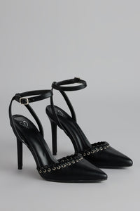 It’s all in the details. These whipstitch stiletto heels bring a sleek finish to any look with their pointed toe and delicate ankle strap—made for dinner plans, date nights, and everything that calls for a little extra polish.