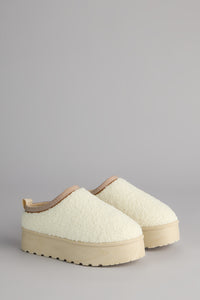 Cozy, but make it elevated. These faux sherpa platform slippers bring soft luxury to your off-duty moments, complete with embroidered trim and plush faux fur lining that feel way too good to take off.