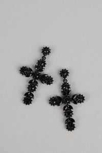 Bring the drama—these midnight-black cross earrings were made for bold, unapologetic glam. Designed with clustered crystal blooms and marquise-cut stones, they shimmer with an edgy elegance that instantly levels up any look.