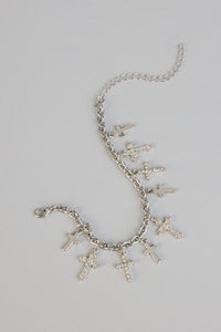 Stacked with meaning and shine. This chain necklace features multiple cross charms for a bold, faith-inspired look that blends edge with effortless everyday style.