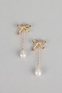 Charm Me Bow Dangle Pearl Earrings