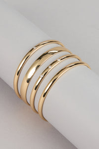 Turn every gesture into a moment with this ultra-glam four-piece bangle set. Featuring a mix of sleek, sculptural, and high-shine designs, this stack instantly elevates any outfit — from going-out fits to off-duty chic. Wear them all together for drama or rotate your faves for a subtle sleek touch.