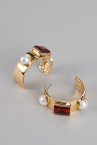 Glam Aura Pearl Gemstone Hoops