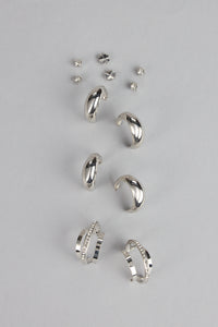 - Mixed metal hoop and stud silhouettes